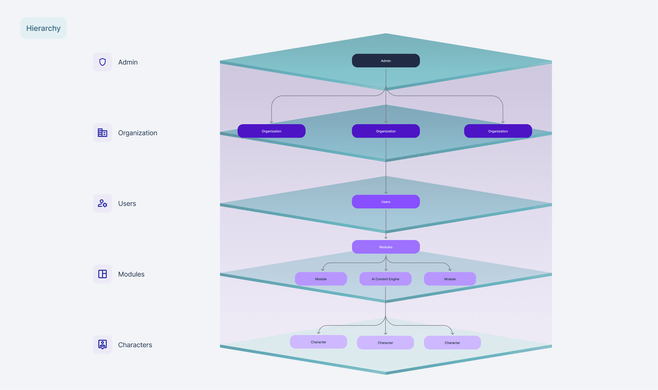 The system was built with a layered module access depending on the organization and their subscription plan, as well as individual user admin access and roles.